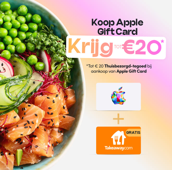 - Koop een Apple Gift Card van €100 of meer en ontvang een Takeaway-tegoedboncode van €20