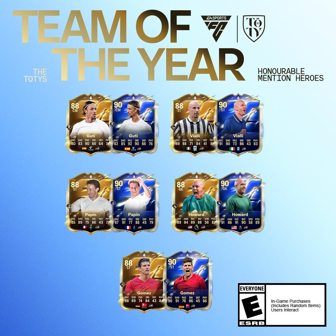 Ein Teil des TOTY-Warm-ups ist das Honourable Mention-Upgrade. Die Classic XI-Helden bekommen für den Anlass ein eigenes Reskin! Schau dir die Karten unten an.