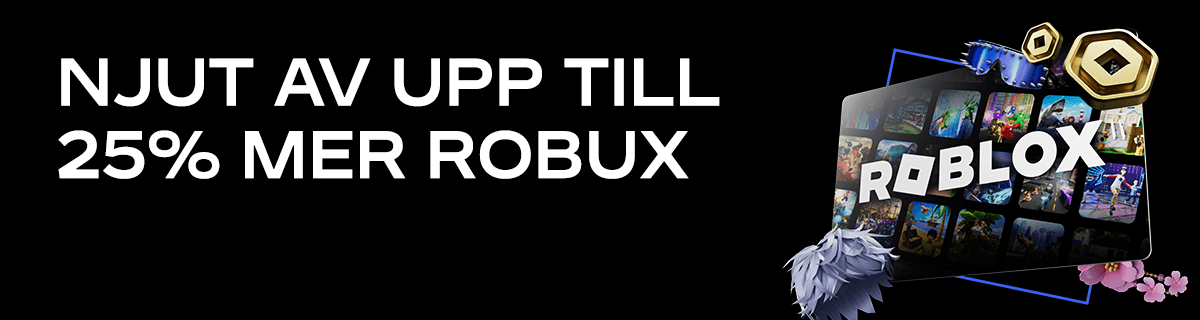 När du köper ett Roblox-presentkort får du upp till 25 % mer Robux! Om du löser in ditt kort på den officiella Roblox-webbplatsen får du extra Robux baserat på värdet på ditt kort, så kallade "Bonus Robux". Kolla tabellen nedan för att se hur många extra Robux du kan få i din valuta.